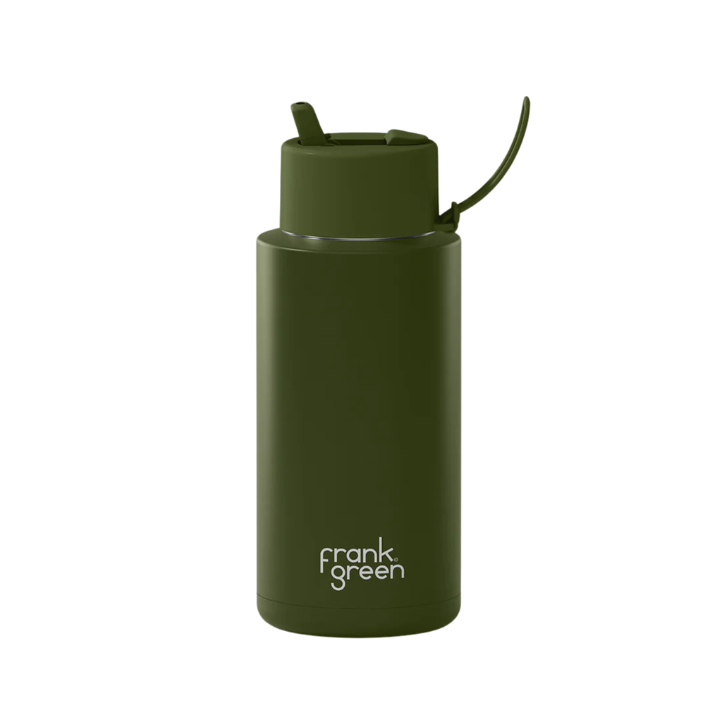 34oz Stainless Steel Ceramic Bottle with Straw - Khaki